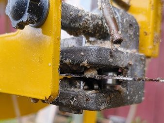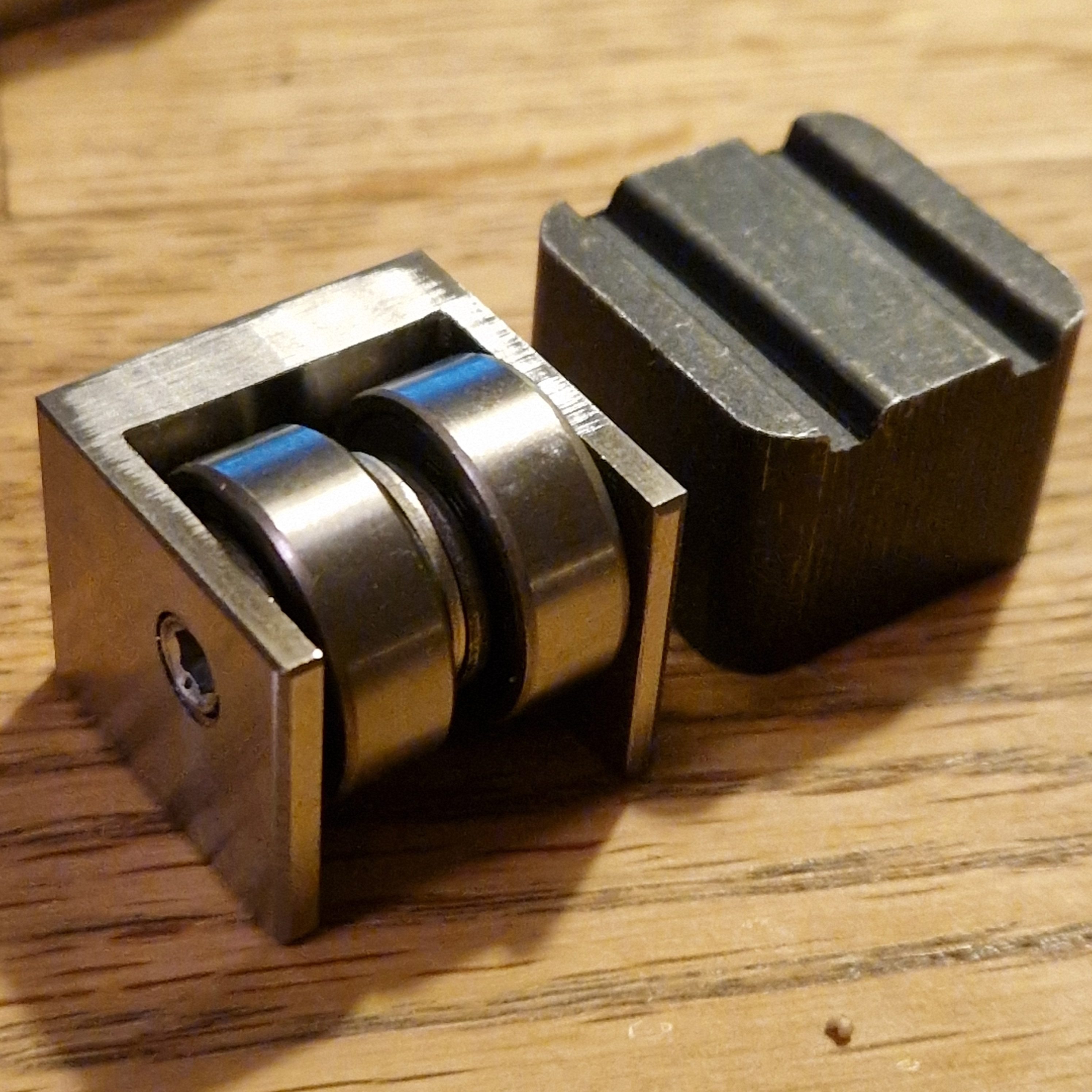 Jag har under sommaren jobbat på att ta fram en smidig bandstyrning till Frontier/Woodland Mills sågverk där man ersätter de befintliga metallklossarna med kullagrade kassetter.