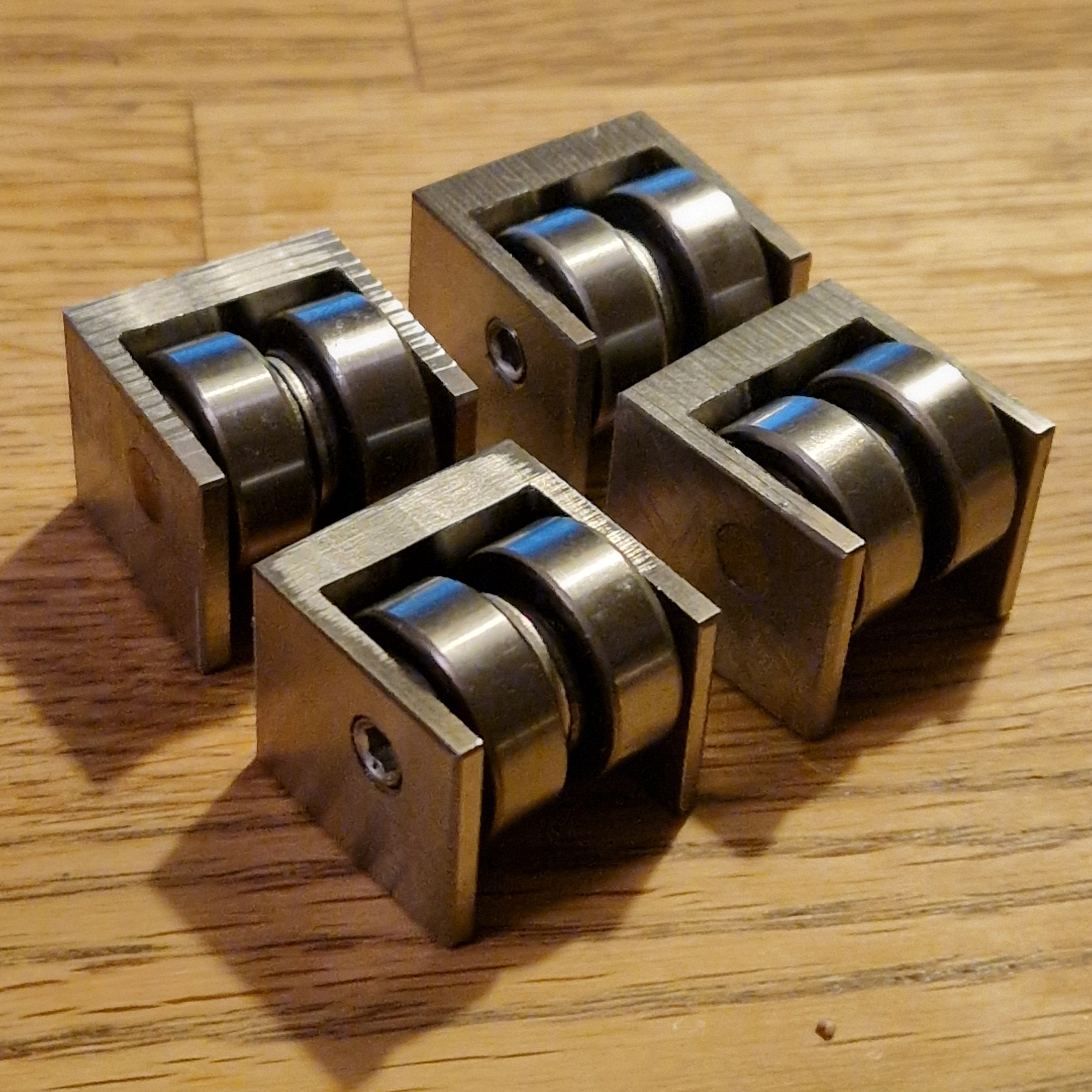 Pris är 3500kr exkl moms för en sats på fyra rostfria kassetter. Kullagren heter 606-2RS och kan enkelt bytas den dagen dom börjar gjort sitt.